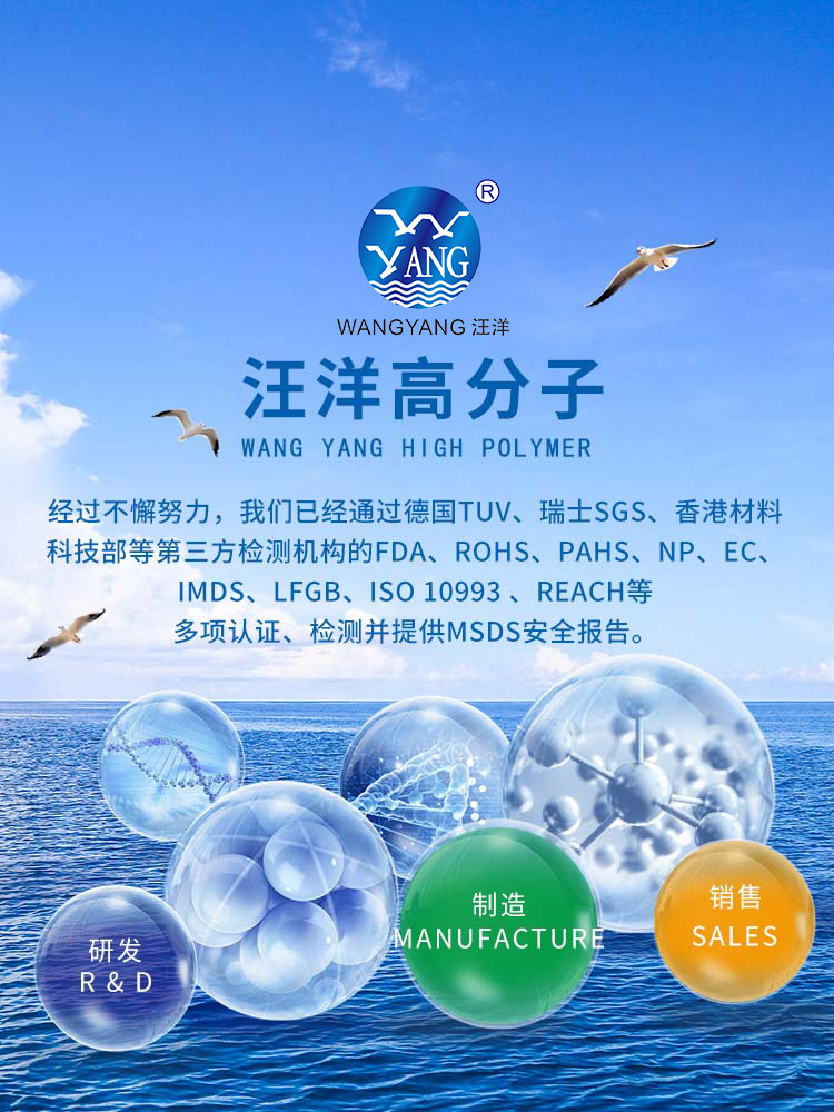 汪洋高分子創(chuàng)立于1999年,是一家集研發(fā)、制造、銷(xiāo)售熱塑性彈性體TPE系列:〈醫(yī)療器具用熱塑性彈性體TPE、雙色包覆料TPE、TPR、TR、TPV、TPU、TPEE、TPAE〉;聚氯乙烯PVC系列:輸血(液)器具用軟聚氯乙烯塑料、NPVC水晶透明料、TPVC彈性料、啞光料);工程塑料系列:〈聚酰亞胺PI、聚醚酰亞胺PEI、醫(yī)用透明抗低溫PP、熔噴PP專(zhuān)用料、PP降溫母料、醫(yī)用透明PA、PA6、PA66、PC、PC/ABS、PBT〉合金、合金電鍍級(jí)、增強(qiáng)、阻燃、增韌、填充;增韌母料系列;WYANGBIO改性生物降解塑料(PLA)系列;WYANGCLEAN螺桿清洗劑系列等產(chǎn)品的高新技術(shù)企業(yè)。